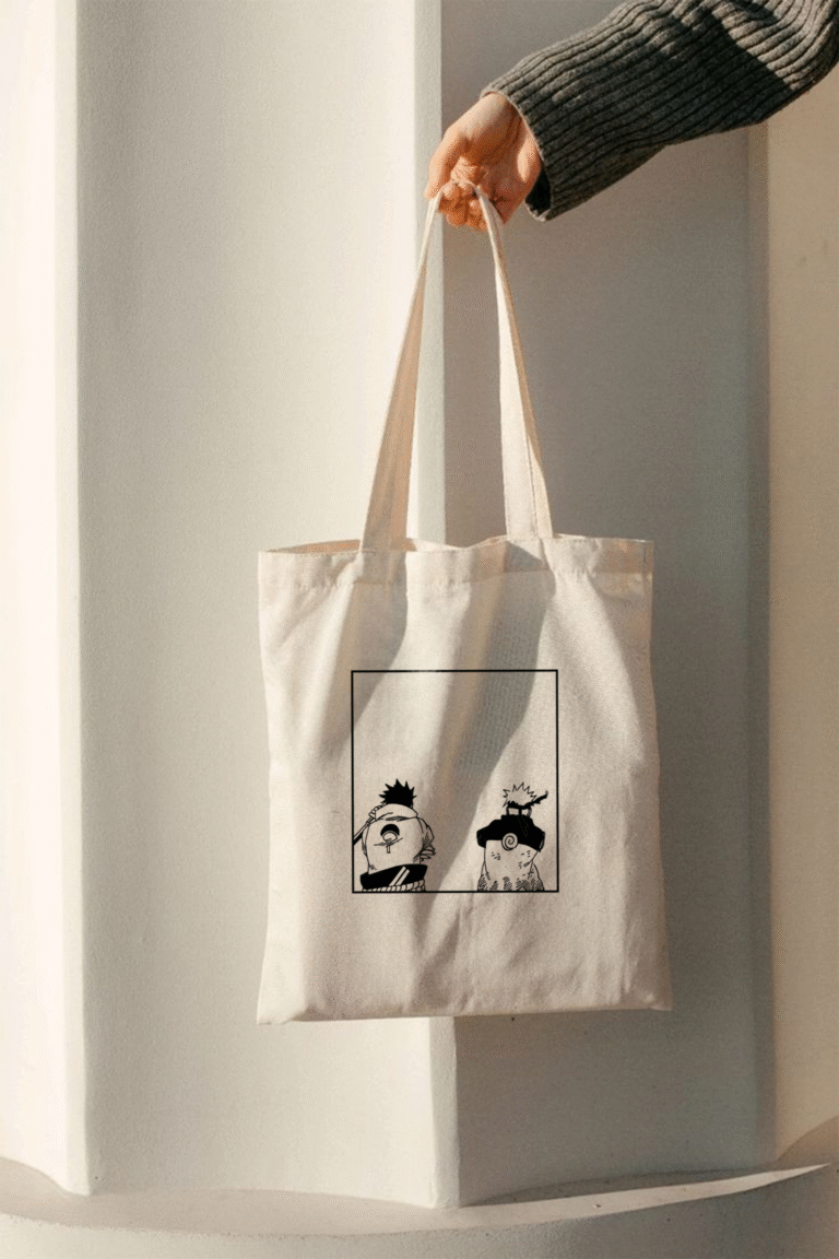 Premium Naruto & Sasuke cotton tote bag featuring bold anime artwork. Lightweight, eco-friendly, and perfect for everyday use.