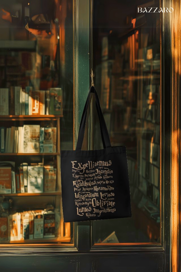 Step into the magical world of Hogwarts with the Harry Potter Spells Tote Bag by Bazzaro. This tote showcases a beautiful design of iconic spells like Expelliarmus, Lumos, Wingardium Leviosa, and more — printed in enchanting typography that any Potterhead will adore.